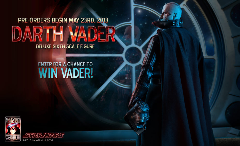 Sideshow has posted a teaser photo of their next 1:6th scale Star Wars action figure: a deluxe Darth Vader. Pre-orders begin May 23rd. expect a full reveal early next week. For a chance to win a Deluxe Darth Vader, click the photo above.