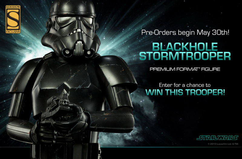 Sideshow provides a sneak peek of their next Star Wars Premium Format Figure: a Blackhole Stormtrooper. Expect a full reveal and details early next week with pre-orders opening May 30th. Click the photo above to enter for your chance to win one.