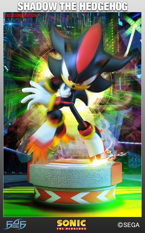 Shadow the Hedgehog will be launching in the fourth quarter of 2013, joining not only Sonic in the Modern line, but also First 4 Figures' existing line of Classic Sonic the Hedgehog statues. The statue be available in two editions: the regular version - pictured above - will retail at $214.99, and the Exclusive version - below - with light up flames seen on the right will cost $229.99.