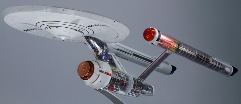 Star Trek Enterprise Project Cutaway Ship (below): Ever look at the iconic silhouette of the U.S.S. Enterprise and wonder what's inside? Wonder no more with the latest Enterprise ship from Diamond Select. Created by the team behind Dragon Models' Project Cutaway line, this plastic, fully painted model of the original U.S.S. Enterprise features transparent pieces that reveal the detailed machinery and living quarters within. Ship measures 18 inches long and comes with a metal display base. Suggested price is $174.99.