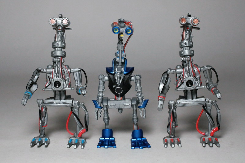 G2 Droid is a brand new sculpt and features eight points of articulation: neck, arms, legs, and heels. C-3PO has ten points of articulation which means he’s standard issue above the waist, and has thigh and knee joints like the previous figure. The RX Droid has eight points of articulation for his three arms, neck, visor, and the rest are in the rotating sections within his torso. A suitcase accessory that does open is also included.