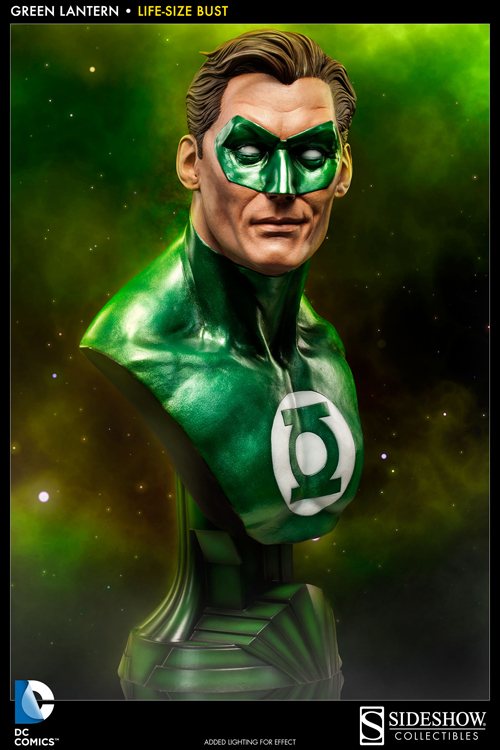 The Green Lantern Life-Size Bust will be priced at $679.99. He’ll be available for pre-order on Thursday, June 13th, 2013 in the weekly Sideshow Newsletter, which is typically published between 2PM and 3PM (Pacific Time).