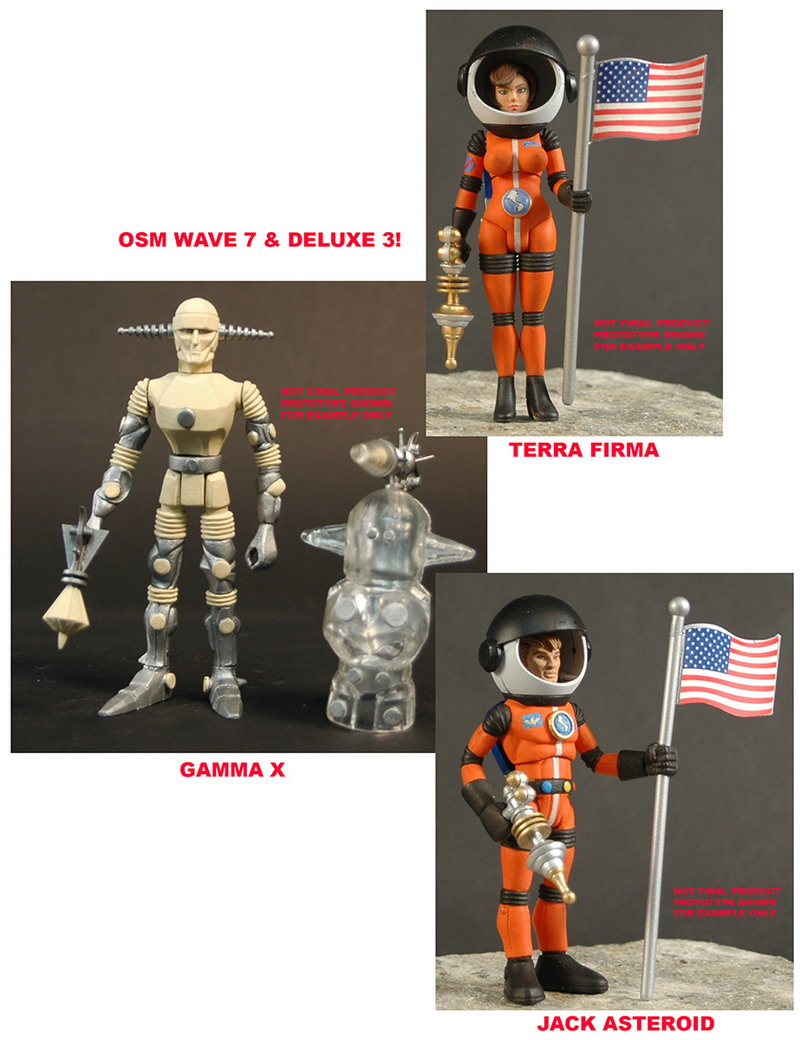 The Four Horsemen pass along a look at some new Outer Space Men, prototype photos of the fully painted Infinity Edition versions of Colossus Rex, Horroscope, Ophromatem, Gamma X, Terra Firma and Jack Asteroid. This wave is scheduled to be released in early 2014.