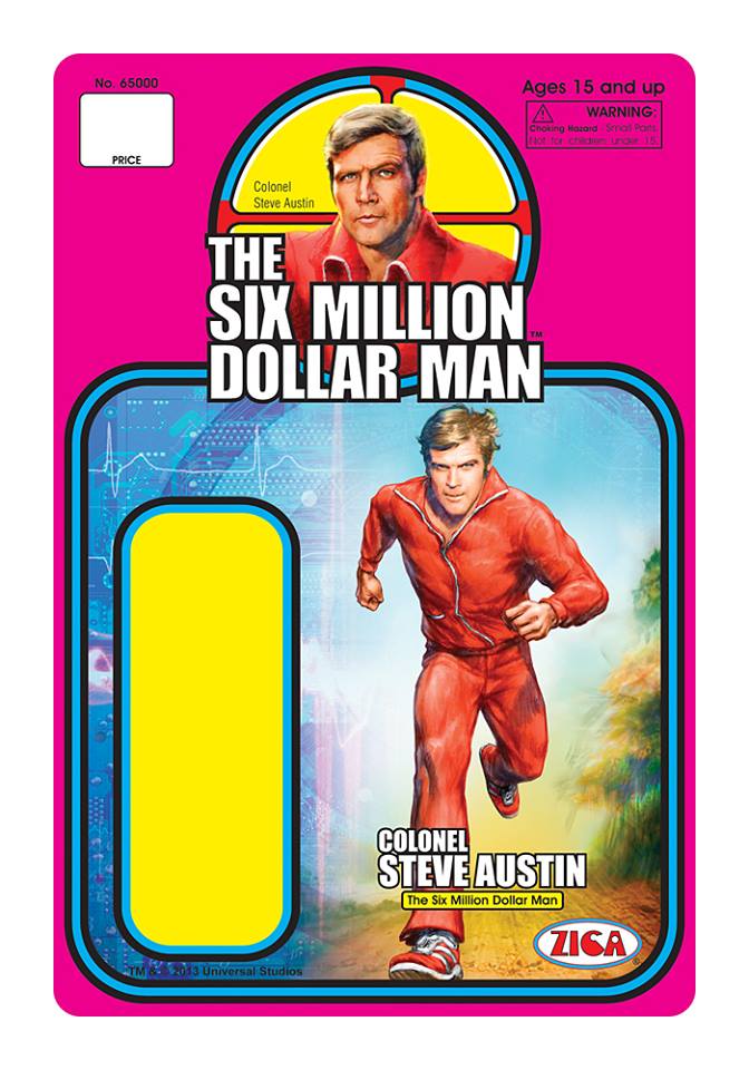 As reported HERE, ZICA Toys was preparing to release new Six Million Dollar Man retro style action figures. Sculpted in 3.75" scale, these harken back to the heyday of action figures, when the designs were simple and the fun factor was high. Pictured is the gorgeous retro card back art that the figures will come packaged on.