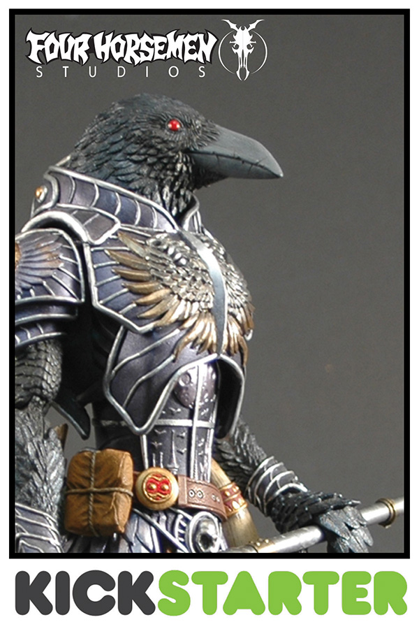 It’s not over yet though. No matter what, the first six variant Raven figures will go into production and will get into your hands and onto your shelves early next year. But there’s still the matter of the other six remaining variant Ravens. They’re set up as “stretch goals”, which means that each time a new stretch goal if met, that will be enough money to go into production on two more Ravens variant figures and they’ll be made available for purchase. The first stretch goal is for the White Raven and Quetzacoatl. The stretch goal is set at $85,000.00 and the Four Horsemen know that’s a lot of money and it seems like a LONG way off, with as quickly as fans got the project up the the “fully funded” goal, they don’t think that reaching each of the next three stretch goals is going to be all that difficult, especially with 28 days still left in the Gothitropolis Ravens Kickstarter campaign. So, the Four Horsemen still need all the help they can get from you to spread the word and get the news out there so we can get ALL 12 of the Gothitropolis Ravens rolling into production.