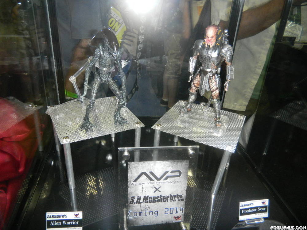 One of the biggest surprises at the Bandi/Bluefin booth at this year’s Comic-Con was a new addition to the S.H. MonsterArts lineup: Alien vs. Predator! Thus far we’ve been getting tons of amazing Godzilla and other giant monsters (including King Kong), and now Bandai is adding figures of our favorite aliens. At their booth was a small display case with both Alien Warrior and Predator Scar figures ready to do battle, along with a few tidbits of information. These do indeed come from the AvP film, and are scheduled for release in 2014. All of these movie properties are hot right now, and these look like they’ll be solid additions to your Alien or Predator collections. Keep your eyes on Figures.com for more info coming soon.