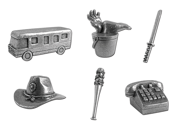 Despite its post-apocalyptic setting, MONOPOLY: The Walking Dead Survival Edition delivers a classic Monopoly wheeling and dealing game play. Players fight for, and then must fortify the prime real estate and resources that will sustain their lives. The game takes over the characteristic of The Walking Dead as the properties all correspond with the series landmarks such as the prison cells, Greene Family farm house, Woodbury, and more locations while game tokens resemble key items from the series such as the Rick’s sheriff hat, bucket of body parts, the telephone, and the R.V.