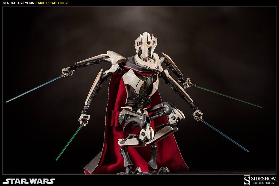 Sideshow is now accepting pre-orders on the long-awaited 1:6th scale General Grievous. Priced at $249.99 with a payment plan available, this formidable four-armed fighter is slated to arrive in February 2014.