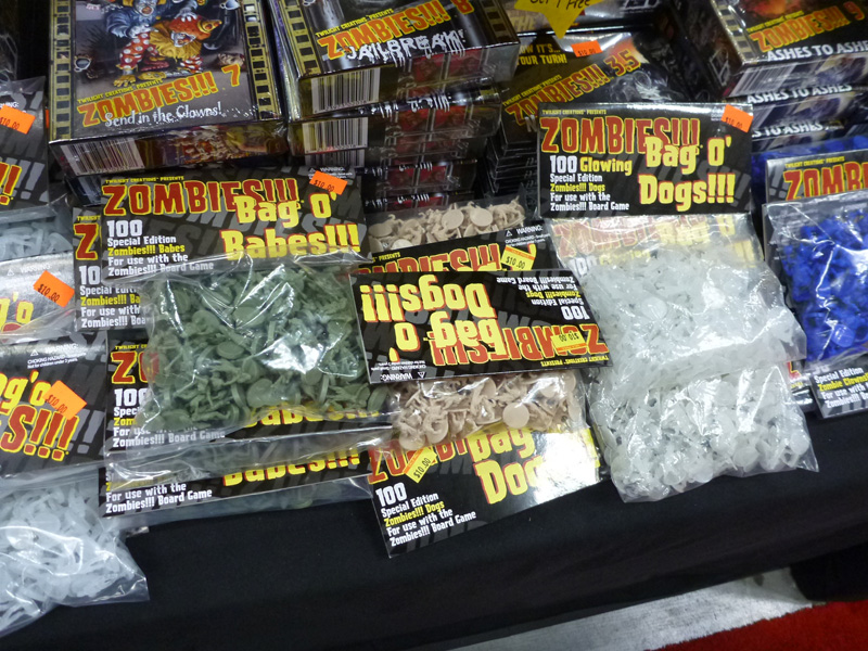 Twilight Creations Inc. had a prominent booth at Gen Con with all of their Zombie goodness from the base game to expansions and all of the cool "Bags Of" products like more zombies, victims, animals, clowns, and more. Also on hand were Twilight's wide variety of other games both classic and current, and attendees could play demos of some of them like Little Dead Riding Hood and Zombie Survival.