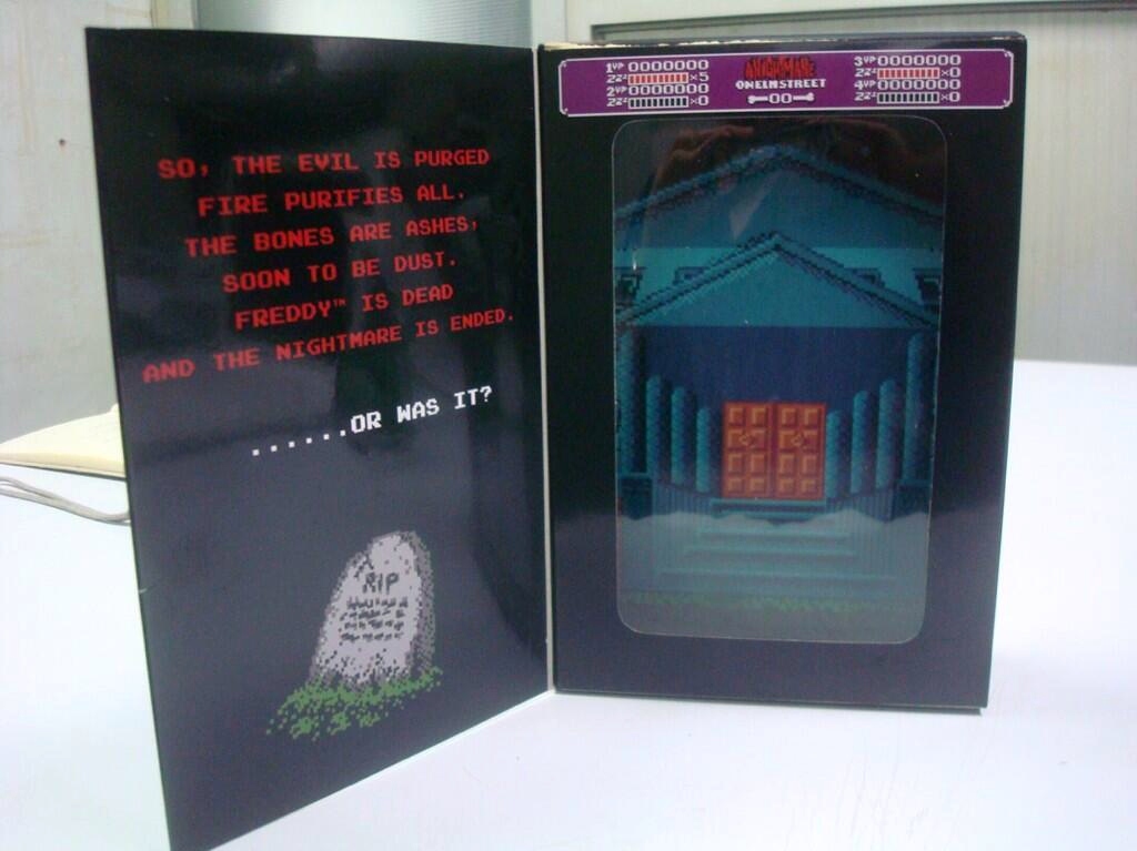 As reported in our story HERE, NECA will be releasing a Nightmare on Elm Street Classic Video Game Appearance Freddy Krueger. Created in the same spirit as their Comic-Con exclusive Friday the 13th Classic Video Game Jason (see our review HERE), the 7-inch figure features Freddy as he appeared in the 1989 NES game done up in that truly horrifying video game deco. Like Video Game Jason, Freddy comes in a special window box packaging with opening flap to re-create the look and feel of the classic 1989 video game packaging. Pictured above is a look at the package interior.