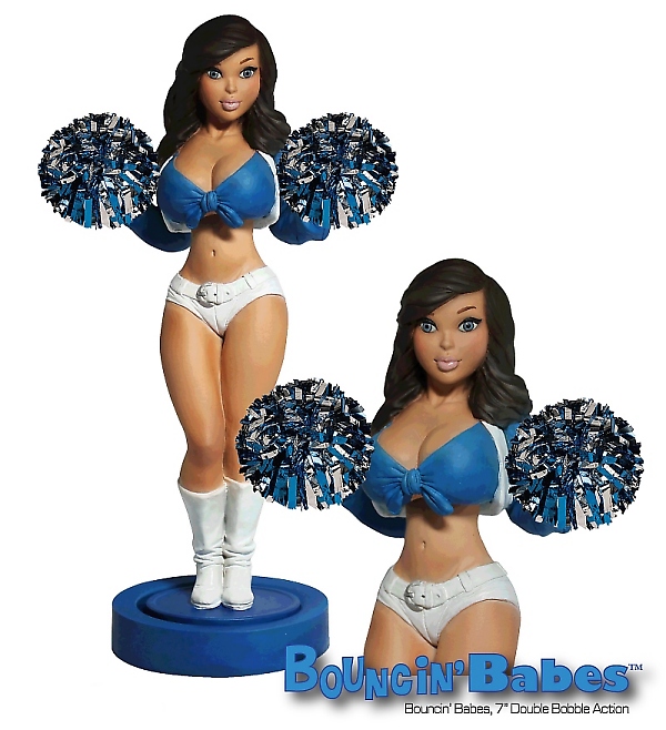 ROCCO: The Bouncin’ Babes Cheerleader concept really came to be when we were just having a good time throwing ideas back and forth. We wanted to create something fun that would have a broad appeal, didn’t necessarily need to be a licensed property but could still lend itself to licensing down the line, and had a unique feature – in this case a bobbler that “dances”. My wife and I started designing and we came up with the cheerleader’s fun, bubbly, sexy look, as well as, the unique double bobbling movement that I engineered.