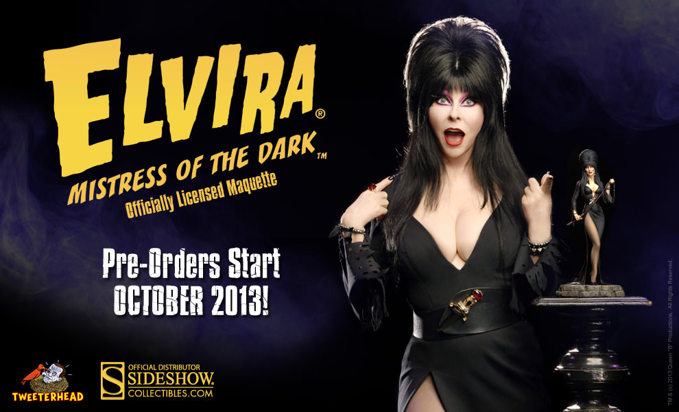 Sideshow has posted a preview of a new Elvira "Mistress of the Dark" Maquette, endorsed by none other than the saucy siren herself. Pre-orders for this Tweeterhead sculpted collectible begin in October. Stay tuned for further details.