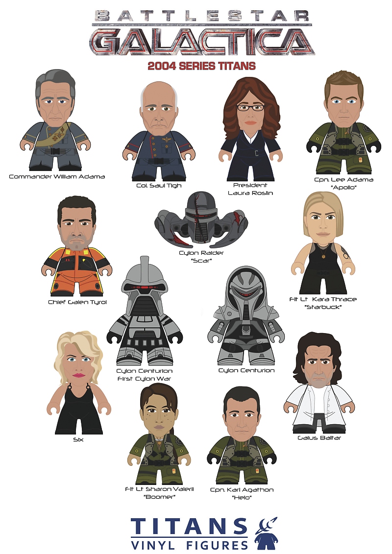 Titan Entertainment announces that they are expanding their stylized vinyl figure "TITANS" series beyond Doctor Who with another classic sci-fi property: Battlestar Galactica: 2004 Series. The first release in an ongoing series of both contemporary AND classic Battlestar Galactica TITANS.