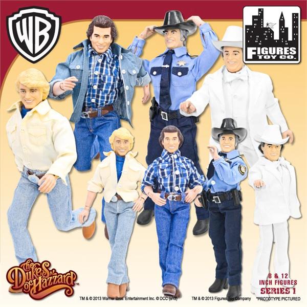 Bo & Luke Duke, Rosco and Boss Hogg are available as either 8-inch ($24.99 each) OR 12-inch ($69.99 each) action figures.