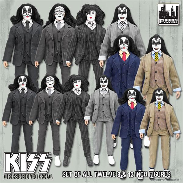 Based on the "Dressed to Kill" album that was released on March 19th, 1975, this assortment features the legendary rock band decked out in suits. Available as 8-inch ($24.99 each) and 12-inch ($69.99 each) action figures, as well as variants of The Demon and Catman in both sizes ($29.99 and $79.99 respectively).