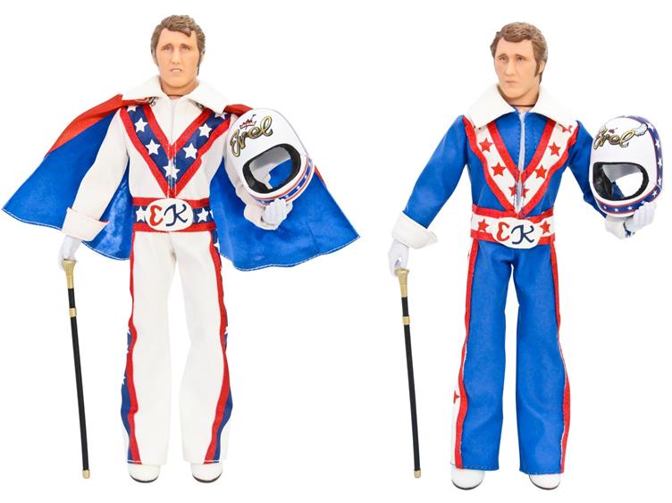 These action figures are based upon two different time periods in Evel Knievel's career. The first is from his Ceasar's Palace jump in 1967, and the second is from his Wembley Stadium Jump in 1975. Available in both 8 inch and 12 inch sizes.