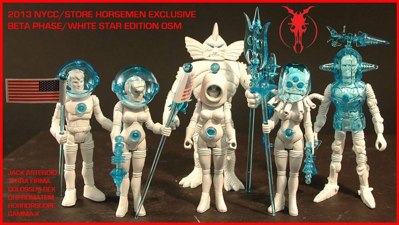 The Four Horsemen are coming to NYCC! They'll be at the Onell Designs booth and will have a number of brand new Outer Space Men exclusives that continue the "White Star" lineup begun earlier this year at SDCC. In addition, the Horsemen have lowered prices and for the first time will be offering figures individually! The new figures include: