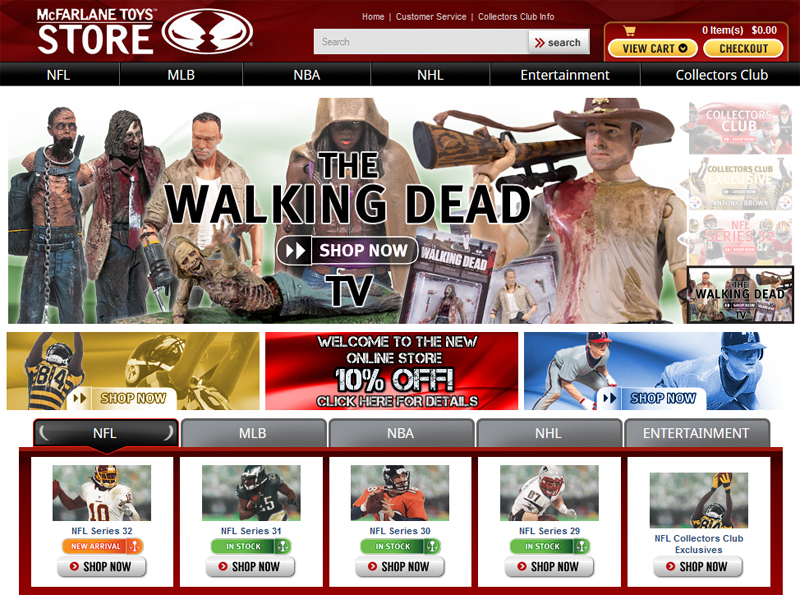 It's been a while since you could purchase McFarlane products directly, but now the McFarlane Toys web store is back in a big way with a whole new site dedicated to the great figures and statues of The Walking Dead, Assassin's Creed, Halo, NFL, MLB, NBA, and NHL. And for a limited time you can get a 10% discount on your orders (see website for details). Check out the relaunch here: www.mcfarlanetoysstore.com