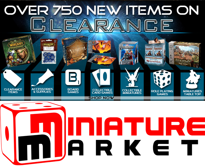 Our esteemed sponsor Miniature Market has just beefed up their clearance section with 750 new items! You can find great deals across their product categories from collectible miniatures to board games, tabletop miniatures, and much more. And to make the sale even better, they've also slashed prices on hundreds of existing clearance items! Head over to Miniature Market and get shopping. But, that's not all...