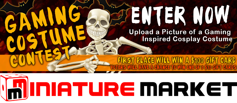 Miniature Market wants to get you in the mood for Halloween with a contest, but not just any old version. This is a Gaming Costume Contest! Become a fan of Miniature Market on Facebook, send in your best gaming costumes, and get your friends to vote for you. The photo with the most votes will receive a $100 gift card to Miniature Market! For the full details head on over to Miniature Market on Facebook.