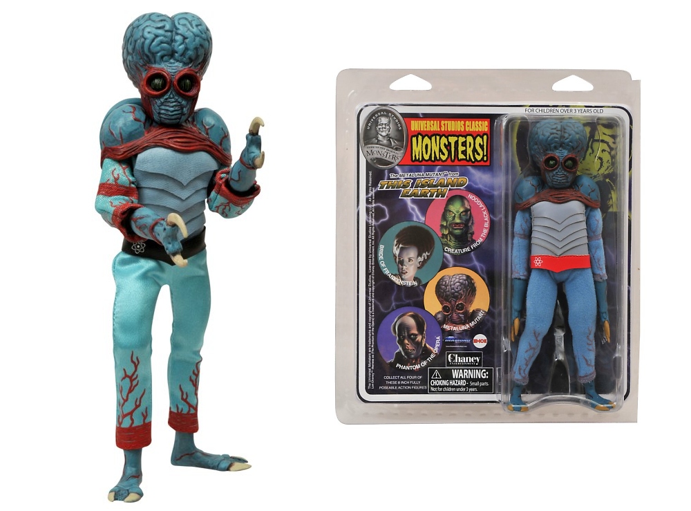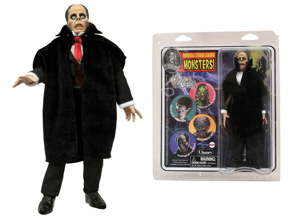 The 1970s cannot be stopped! The next two figures in DST's Mego-style action figure line based on classic Universal Studios monster movies includes the original Phantom of the Opera, featuring the authorized likeness of Lon Chaney, and the Metaluna Mutant from This Island Earth! Each fully poseable 8-inch figure has real fabric clothing, and comes in resealable retro-styled packaging! Designed and sculpted by EMCE Toys! (Case assortment, item code #APR131738, SRP: $20.00)