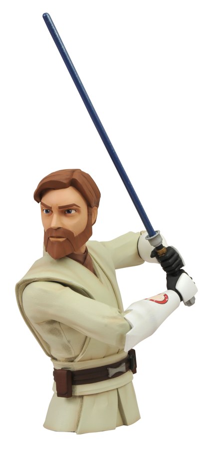 Joining his padawan Anakin, Obi-Wan Kenobi is the second Clone Wars-inspired release in DSTs popular line of Star Wars vinyl banks! Anakins co-star in the hit Cartoon Network show, and the only Star Wars character to appear in all seven feature films, Obi-Wan measures 8 inches tall, not including his removable lightsaber blade, and includes a slot on his back for inserting loose change. Sure to be one of our most popular Star Wars banks ever! Designed by Barry Bradfield! Sculpted by Oluf Hartvigson! (Item code #JAN131644, SRP: $22.99)
