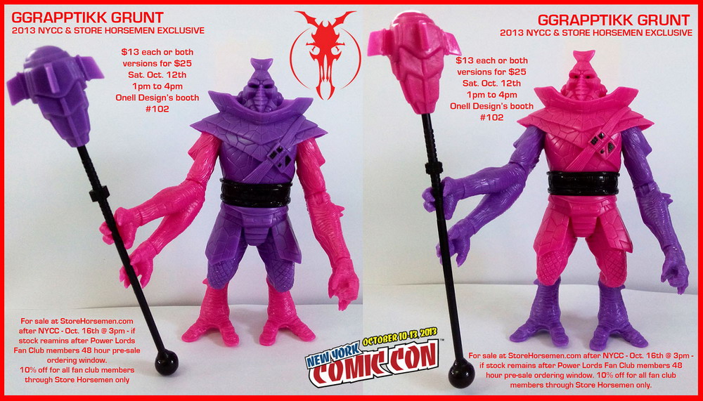 The Ggrapptikk Grunts will be available for purchase at Store Horsemen.com a couple days after the end of the 2013 New York Comic Con on October 13th at 3pm, but ONLY if there’s remaining stock left after the Power Lords Fan Club members 48 hour pre-sale window. Power Lords Fan Club members also get 10% off the purchase of these figures (through StoreHorsemen.com ONLY). To join the Power Lords Fan Club, just go to StoreHorsemen.com.