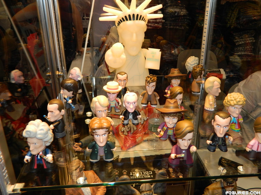 Titan Entertainment had a strong showing at New York Comic Con, keeping attendees happy with a variety of Doctor Who merchandise for sale. Topping th elist was Titan's... TITANS! Some fans took their chance with the blind boxed assortment, while most flocked to the towering 8" Statue of Liberty Weeping Angel TITANS Figure (Glow In The Dark Variant). "Parting of the Ways" and "Tuxedo" vartiants of the Tenth Doctor were also a big draw, along with Titan's 11 character 50th Anniversary set starring ALL numbered Doctors to date - from 1963's First Doctor to 2013's Eleventh Doctor.
