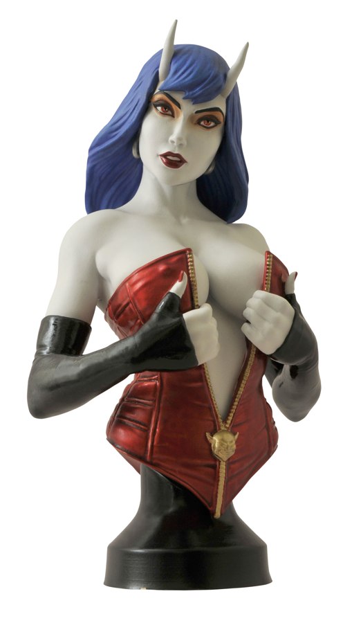 The angelic artwork of comic creator Joseph Michael Linsner has long haunted our dreams, but his devilish artwork is pretty dreamy, too! Sinful Suzi is in many ways the opposite of Linsner’s Dawn character, but she’s just as easy on the eyes, and this 6.5-inch resin bust captures the horned harlot in a red corset that just won’t stay on. Based on a print by LInsner himself! Sculpted by Jerry Macaluso. (Item code #NOV131818, SRP $70.00)