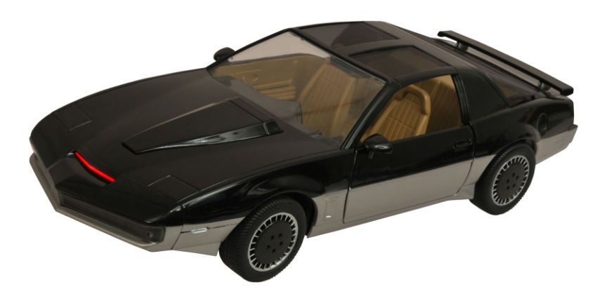 Watch your rear fender, KITT! The evil vehicle KARR (Knight Automated Roving Robot) appeared in two of the most popular episodes of the classic TV show Knight Rider, where he quickly established himself as one of the greatest vehicular bad guys ever! An early prototype of KITT that later became his greatest foe, KARR is now a 1/15 scale electronic replica, measuring 14 inches long with working lights and sound effects, including some of KARR’s classic dialogue from the show! Packaged in a window box with a try-me button. (Item Code “NOV131815, SRP: $60.00)