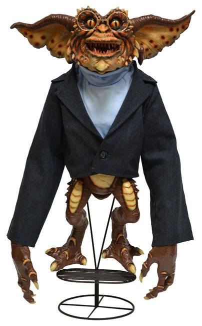Coming in January 2014 comes a new life-size prop replica from NECA: Brain Gremlin. As seen in Gremlins 2: The New Batch, this hand-painted rubber and latex figure stands nearly 30″ tall and features a sports jacket, a shirt, and removable eyeglasses, all entirely faithful to The Brain’s on-screen wardrobe in the movie.
