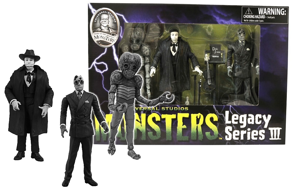 Between 1923 and 1958, Universal Studios released over 60 different monster movies, all in black-and-white, that gave the film world some of its most iconic characters. In honor of that legacy, this deluxe collectors' box set presents three of the most famous Universal Monsters -- the Invisible Man, the Phantom of the Opera, and the Metaluna Mutant from This Island Earth-- in their original-black and-white appearances! These exclusive 7-inch scale figures will only be available as part of this set, and come in a display-quality window box. Designed and Sculpted by Gabriel Marquez and Jean St. Jean. (Item #JUN131799, SRP: $50.00)