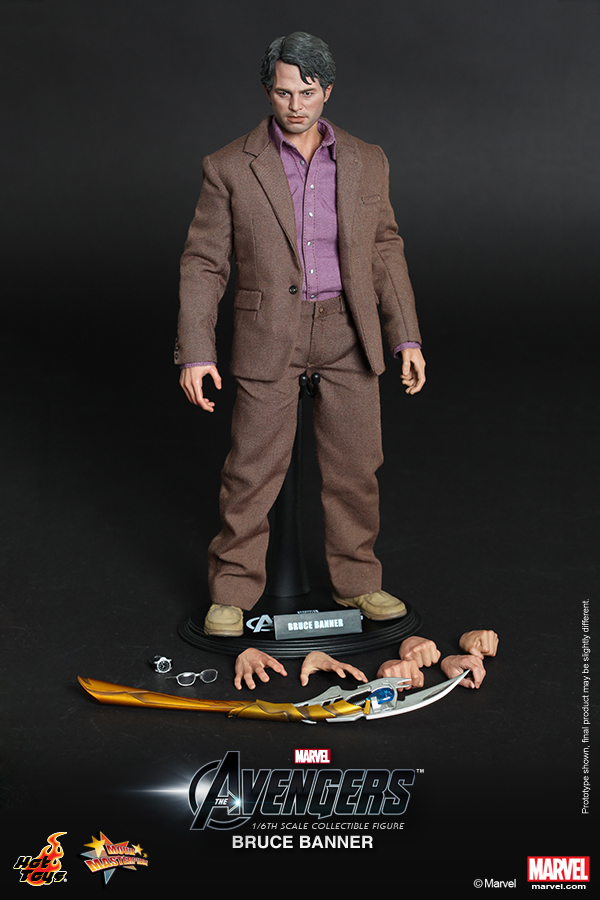 The 1:6 scale Bruce Banner figure can be purchased individually (details below - MMS229) or together with the Hulk in a deluxe two-pack (pictured top - MMS230). The two-pack includes a diorama base with fallen Chitauri footsoldier and two (2) pieces of metal-like structural steel.