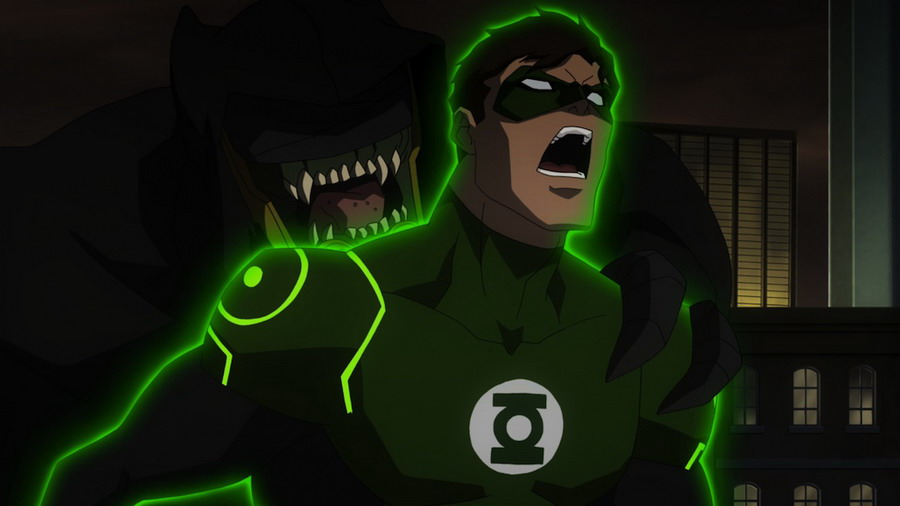 The clip features Batman and Green Lantern meeting for the first time while simultaneously dealing with both a renegade parademon and the local police. Jason O'Mara (Terra Nova) and Justin Kirk (Weeds) provide the voices of Batman and Green Lantern, respectively.