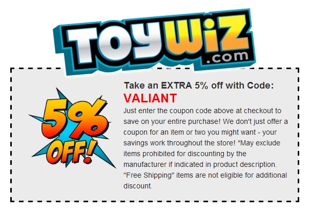 ToyWiz.com has thousands of in-stock items. Use the coupon code VALIANT and receive 5% off your purchase! Shop from an incredible selection of the newest and most popular action figures, toys, and collectibles including: