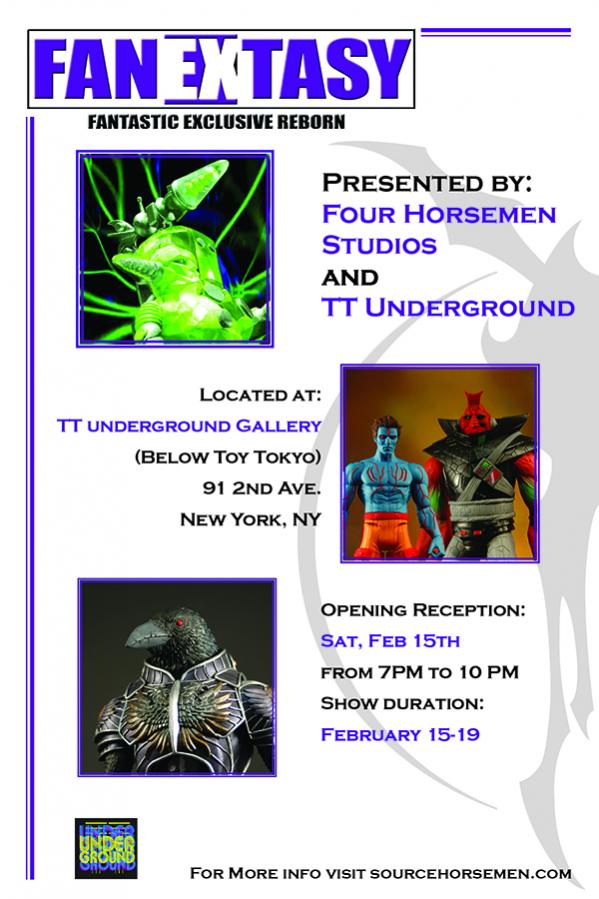 The Four Horsemen announce their fourth Toy Fair event: Toypocalypse 4: FanEXtasy. As with past events, Toypocalypse 4 will be hosted by TT Underground Gallery in New York City.