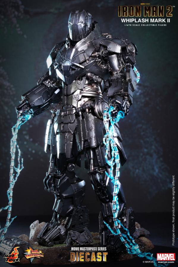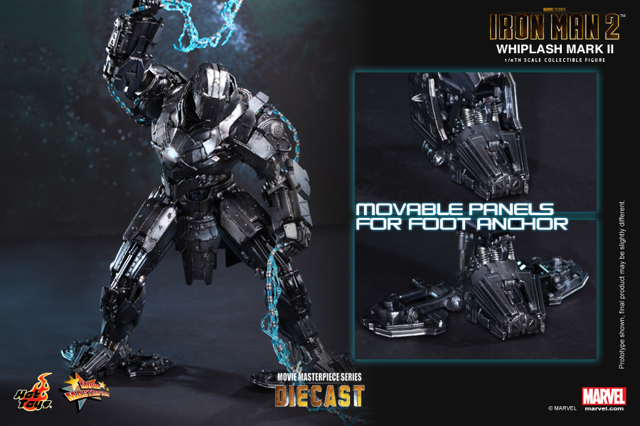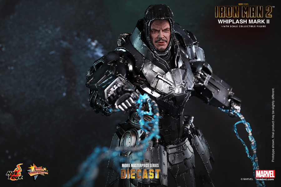 At the climax of Iron Man 2, Ivan Vanko appeared in his new Whiplash Mark II armor and proved to be a formidable foe for both Tony Stark and Colonel James Rhodes. The Whiplash Mark II’s incredible mechanical design has left a strong impression on Iron Man fans and since the appearance of collectible figure’s prototype at various Hot Toys exhibitions, fans have been longing for the official reveal of this amazing armor.