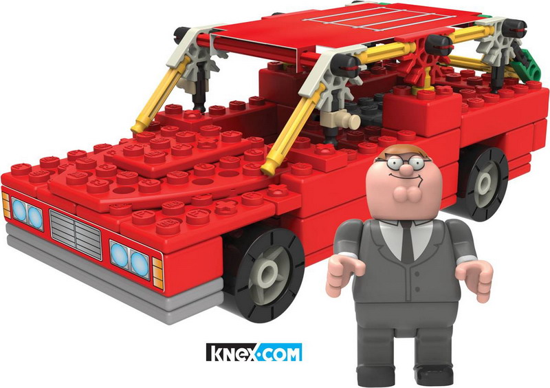 Build Peter in the family Station Wagon from the hit TV show Family Guy! Set includes a buildable Peter figure dressed in his work suit, plus enough K’NEX rods, connectors and bricks to build a moving replica of the family’s red Station Wagon from the show complete with a seat for Peter. Full color building instructions included. Ages 8+. SRP $16.99. Available Now.