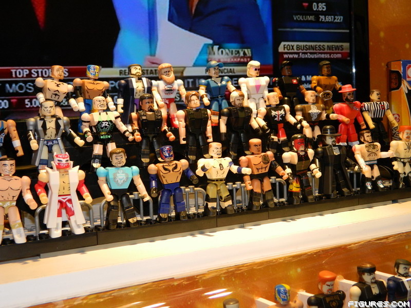 The construction toy market has exploded over the last few years, and no longer is there only one company putting out high quality and fun toys. The latest to get in the game is the Bridge Direct, probably best known for its line of Hobbit action figures. At New York Toy Fair we got to see the vast amount of product that's coming down the line in their C3 Construction brand for mega properties NBA and WWE! Starting with basketball, Bridge is coming out with several different tiers of products with blind bagged mini figures and small and large building sets. Locker Sets capture your favorite players with a section of their locker room that's specific with team and name branding. The larger One on One sets pit two players against each other with a section of court, while the massive MVP Edition Full Court Set brings exactly what's in the name!