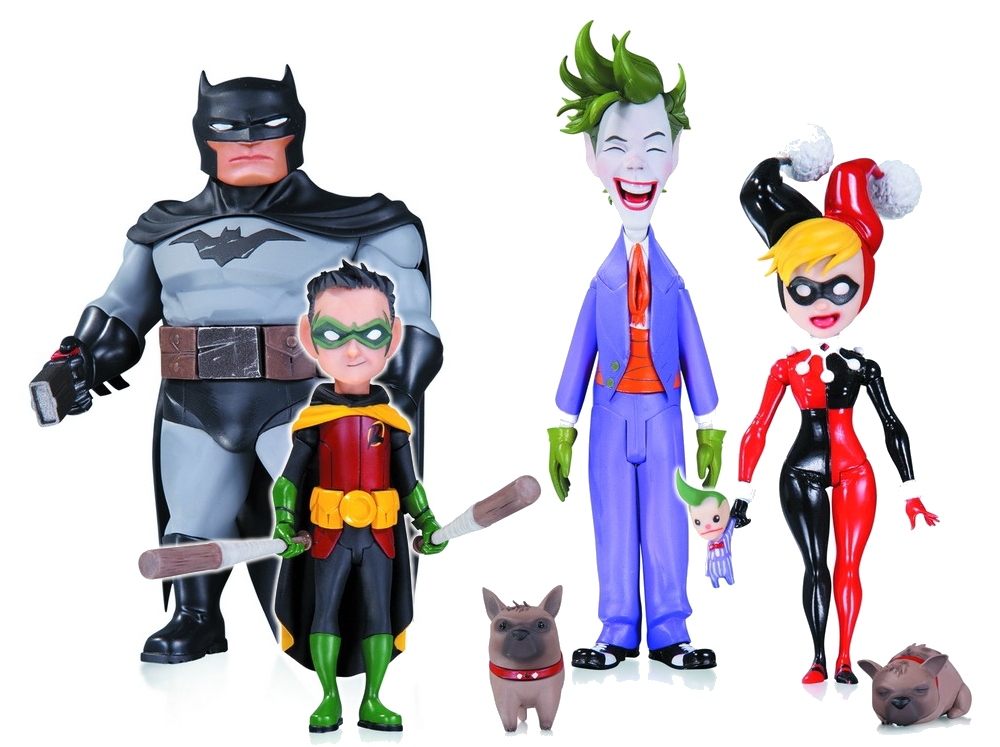 The characters of Gotham City get an adorable make-over in the newest figures from DC Collectibles! Based on the designs by fan-favorite artist and co-writer of BATMAN: LI'L GOTHAM comes Batman, Robin, The Joker and Harley Quinn like you've never seen them before.