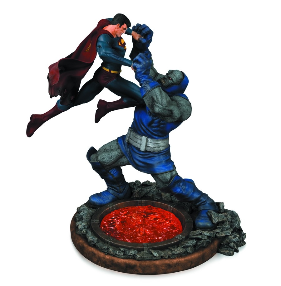 Superman takes the fight to Darkseid as they battle over the ever-raging fire pits of Apokolips in this beautiful second edition of DC Collectibles' classic battle statue. Measures Approximately 12.5" Tall.