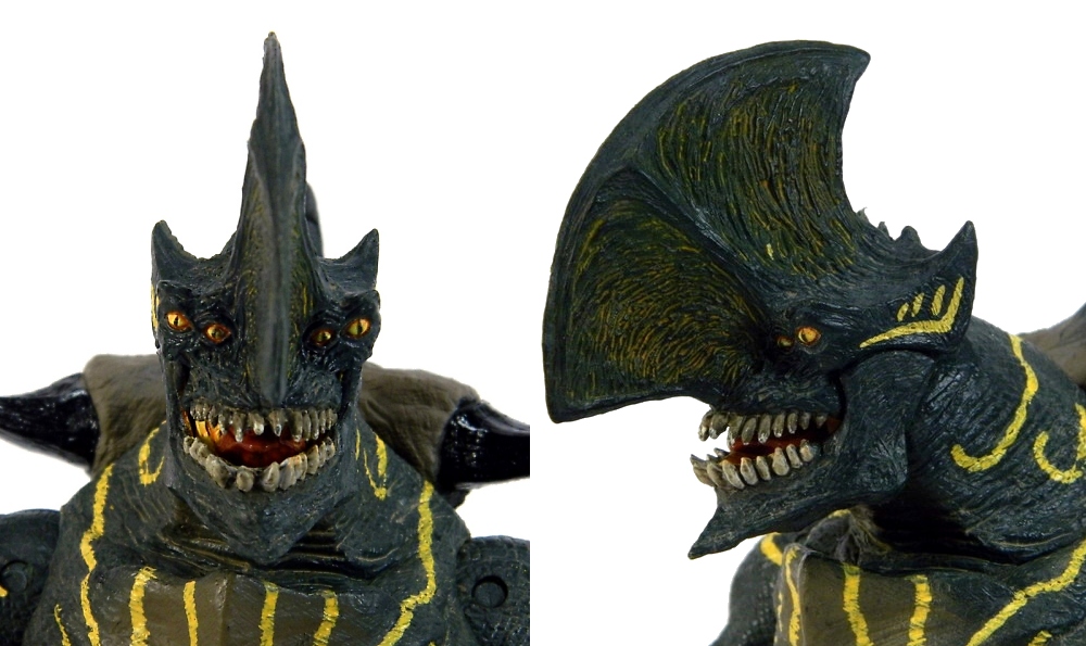 Taking EVERYTHING great about the new Knifehead figure's redesign, Trespasser one-ups it with a rad new creature head, back plate and color scheme. Trespasser is all about his wedge, axe-like head. This figure is not to be confused with "Axehead" - the concept for what became Trespasser in the final film. Once you see the Axehead figure that is coming (Series 4) you'll know exactly what I'm talking about. This Kaiju is best remembered in the movie for laying waste to the Golden Gate Bridge (and some military jets for good measure).