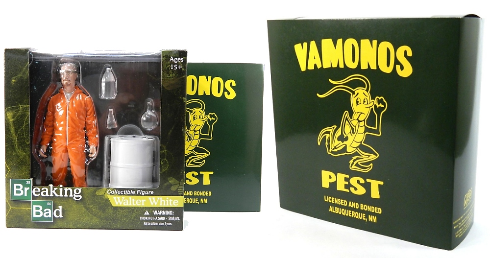 In stock now and only available at Toynk.com, this 6" tall figure includes a white drum, 3 lab flasks and removable eyeglasses. As an added bonus, the slipcover packaging displays the Vamonos Pest logo. Check out the new pics at the link below!