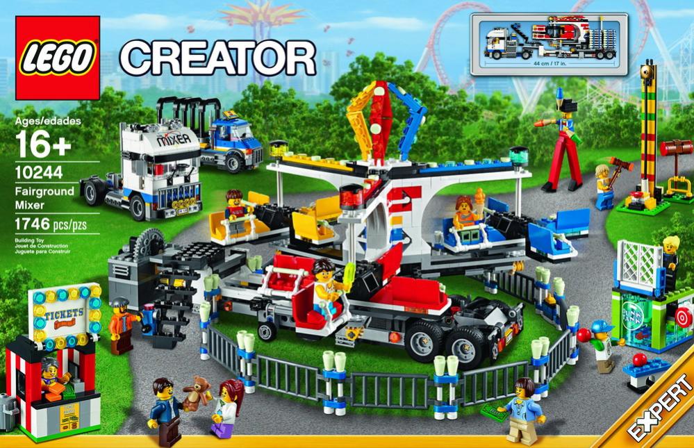 The LEGO Fairground Mixer (1,746 Pieces, US $149.99) will be available for sale directly through LEGO beginning June 2014 via shop.LEGO.com, LEGO Stores and by phone. It includes all the following items to recreate your own mini fairground: