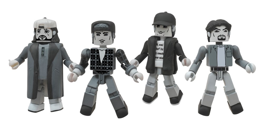 These Minimates aren't even supposed to be here today! It's the 20th anniversary of Clerks, the legendary first movie by the godfather of geeks, Kevin Smith, and DST is celebrating with a box set of four Minimates! Dante, Randal, Jay and Silent Bob are each lovingly rendered in black-and-white, standing approximately 2 inches tall with a variety of interchangeable parts and accessories. Packaged on a blister card. (Item #MAY142230, SRP: $19.99)