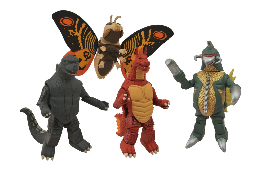What's the best way to stop a towering atomic monster? Put him in your pocket! Celebrating 60 years of Godzilla movies, this box set of classically-styled Minimates includes Godzilla and three of his most famous friends and foes: Mothra, Gigan and Titanosaurus! Each Minimate mini-figure stands approximately 2 inches tall and features a variety of interchangeable parts. Packaged on a blister card. (Item #MAY142232, SRP: $19.99)