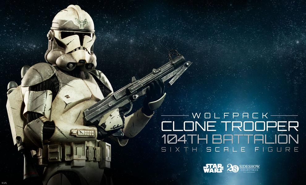 Sideshow teases two new upcoming collectibles: a new 1:6th scale Wolfpack Clone Trooper 104th Battalion figure and a Catwoman Maquette Diorama. Expect a full reveal on both items early next week with pre-orders starting on Thursday, May 22nd, 2014!