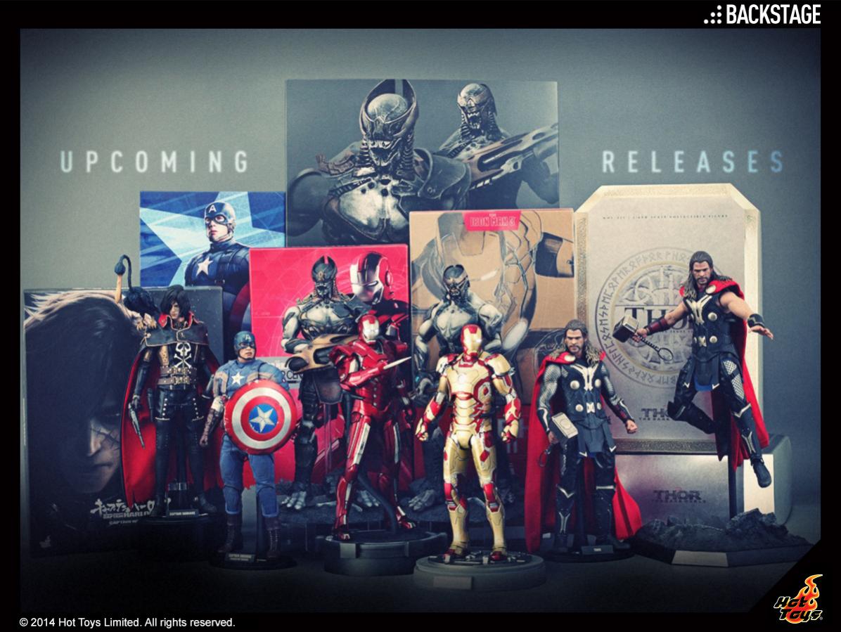 Be prepared to see MMS Diecast Mark XLII and Silver Centurion from Iron Man 3, fully armored and the Light Asgardian Armor version of Thor from Thor: The Dark World, Captain America (Golden Age Version) from Captain America: The Winter Soldier, Chitauri Footsoldier and Commander from The Avengers, and Captain Harlock (and with Throne of Arcadia) from Space Pirate Captain Harlock.