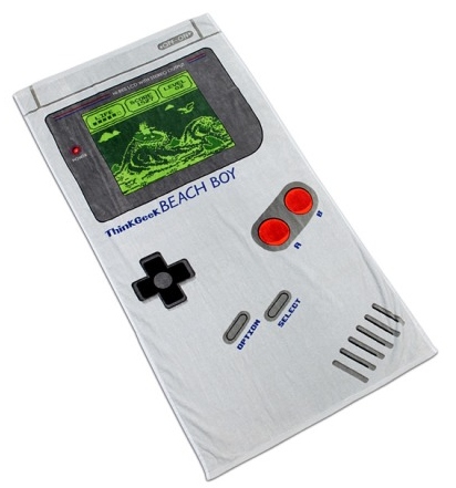 Invited to a beach party but don't want to leave the comforts of your beloved video games? Lounge in style with this retro video game beach towel. Modeled off the classic Game Boy system. 100% cotton and measures 30" by 60". Machine washable. Don't forget the sunscreen!