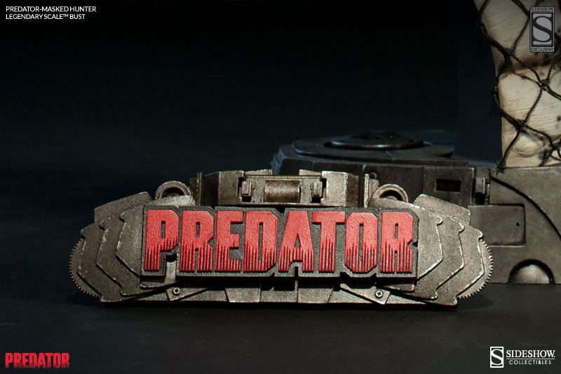 Based on Stan Winston’s original Predator design for the hit 1987 sci-fi action film, Sideshow’s new Predator bust stands 17" high on a uniquely themed base. The Predator bust comes to life with movie-accurate detail and costuming elements, including real fabric netting and an ornate ‘trophy’ necklace of threaded bones. Disguised behind his formidable bio-mask, the vicious hunter is equipped with his impressive shoulder-mounted Plasma Caster, complete with light-up red tri-laser target designator.